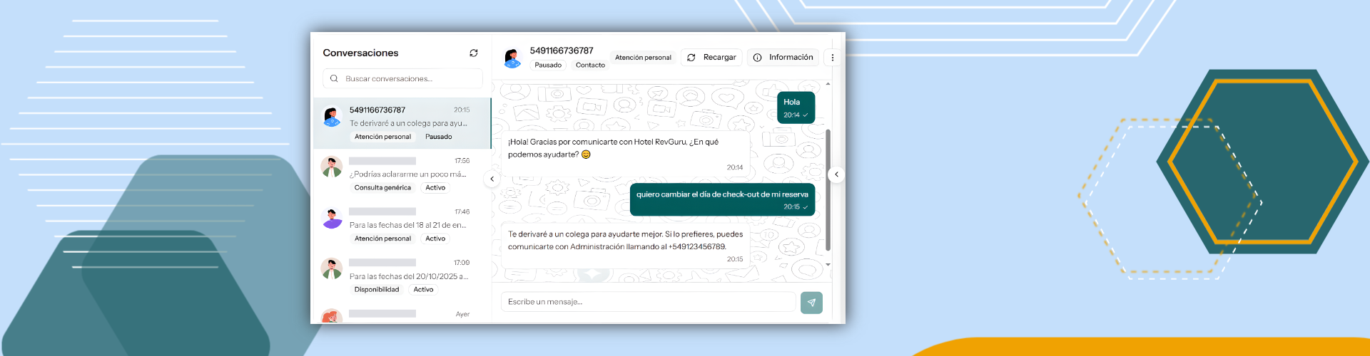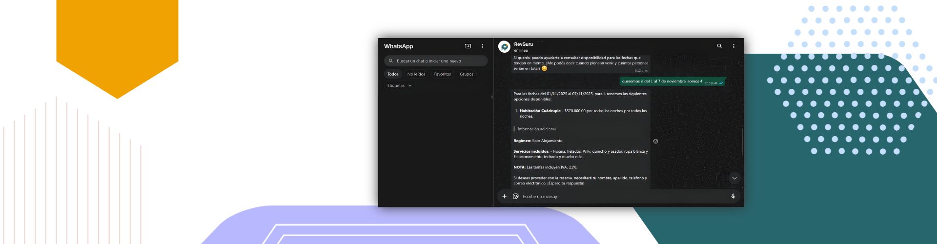 A diferencia de los chatbots tradicionales, RevGuru entiende el contexto y la intención detrás de las palabras, comunicándose con un tono cercano que replica la calidad de atención que define a la hospitalidad .