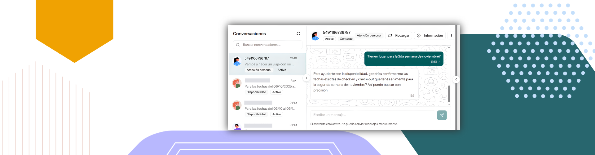 Mantiene conversaciones cálidas y naturales que reflejan la identidad de tu marca, generando confianza y guiando al cliente hacia la reserva sin que se sienta que habla con un robot.
