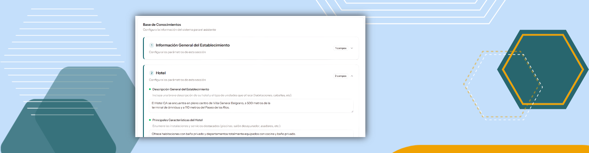 Te permite cargar y actualizar toda la información de tu hotel desde un panel simple, para que el agente siempre responda con datos correctos y validados por vos.