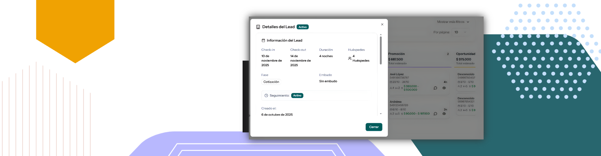 Integra en un solo lugar tu comunicación por chat, la gestión comercial de leads y la conexión con tu PMS, dándote un control total y una visión 360° de tu operación de venta directa.